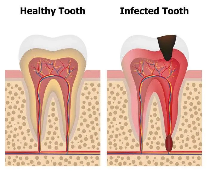Unlike a cavity, which is a problem on the surface of your teeth, a pulp or root infection occurs inside the tooth. It attacks the soft tissue under the hard enamel that you see when you open your mouth and look at your teeth. Because of this, simply brushing your teeth or putting on a filling will not stop this problem, the infection needs to be accessed and treated with antibiotics, or the infected root or pulp needs to be removed. Root canal therapy means cutting into the tooth to gain access to the infected interior to do.